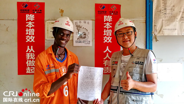 丹尼斯來到卡魯瑪項目部工作后通過與中國員工的接觸,了解到更多的中國文化,學到了電建人勤奮工作的精神。