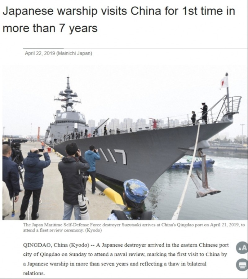 日本共同社21日報道,日本海上自衛(wèi)隊“涼月”號驅(qū)逐艦21日抵達青島港。這是海上自衛(wèi)隊艦艇自2011年12月以來時隔約7年半再次訪華,也是去年10月日中首腦會談商定的兩國艦艇互訪的一環(huán)。此舉旨在促進防衛(wèi)交流以構(gòu)建信賴關(guān)系。