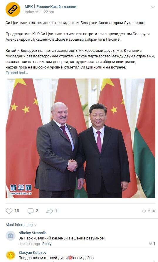 中央廣播電視總臺(tái)“中俄頭條”VK用戶Nikolay Strannik在留言中說(shuō):共建“一帶一路”倡議源自中國(guó),成果屬于世界。中白“巨石”工業(yè)園是兩國(guó)元首的英明決策。