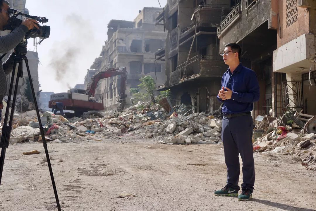 總臺央視駐外記者在敘利亞報道戰(zhàn)后清障工作