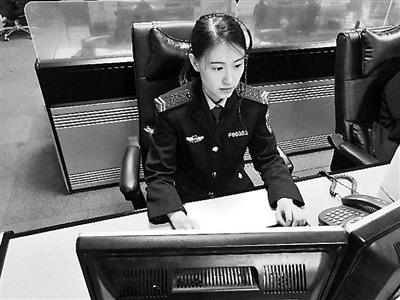 003號接警員秦萱接聽110報警電話和處理警情的工作照。(圖片由沈陽市公安局提供)