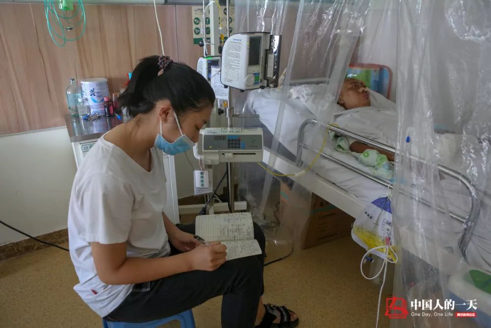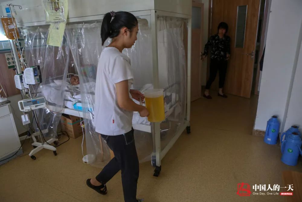 ↑母親骨髓移植手術(shù)后,每天都需要用生理鹽水持續(xù)沖洗膀胱,加上腸胃的排異反應,趙思琦每天至少要為母親端屎倒尿50多次。