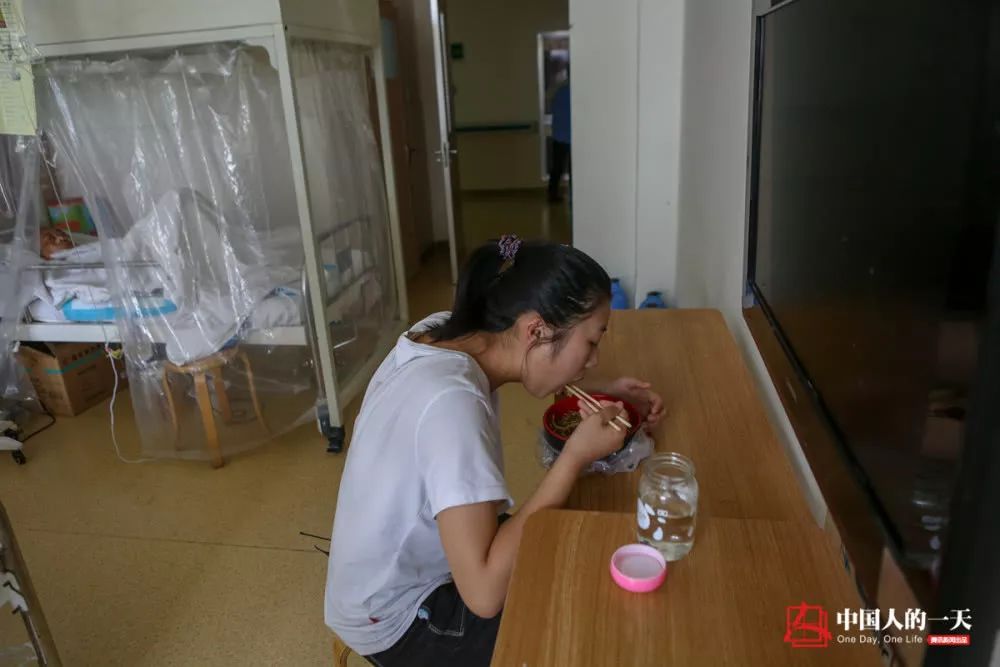 父親 四處在 籌措媽媽的住院費,趙思琦忙前忙后快到中午,才從柜子里拿出昨晚剩的一點炒餅,吃了兩口!昂⒆泳枇斯撬瑁移鋵嵪氡M可能讓孩子吃好 一 點補 補 ,但是孩子看我吃什么就跟我一起,想給我減輕負擔!闭f到這里,趙建朝紅了眼睛,直說自己對不住孩子。