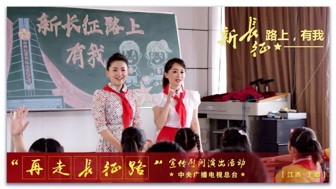 在長(zhǎng)征源小學(xué)的多功能教室里,另外一場(chǎng)別開(kāi)生面的主題班會(huì)“新長(zhǎng)征路上,有我!”也正在舉行。文化志愿者中央電視臺(tái)少兒頻道主持人月亮姐姐、小鹿姐姐和小學(xué)生們一起分享故事《我的紅軍前輩》,交流主題繪畫(huà):《我們的燦爛生活》。長(zhǎng)征源小學(xué)校長(zhǎng)對(duì)記者表示:這所學(xué)校有獨(dú)特地理優(yōu)勢(shì),近年來(lái),學(xué)校通過(guò)開(kāi)展“誦長(zhǎng)征詩(shī)詞,讀長(zhǎng)征故事,看長(zhǎng)征影視,唱長(zhǎng)征歌曲,訪(fǎng)長(zhǎng)征人物,游長(zhǎng)征舊址,研長(zhǎng)征課題,做長(zhǎng)征傳人”等活動(dòng),教育每一個(gè)學(xué)生在新長(zhǎng)征路上牢記傳統(tǒng)、刻苦學(xué)習(xí),將來(lái)為祖國(guó)做出更大的貢獻(xiàn)。