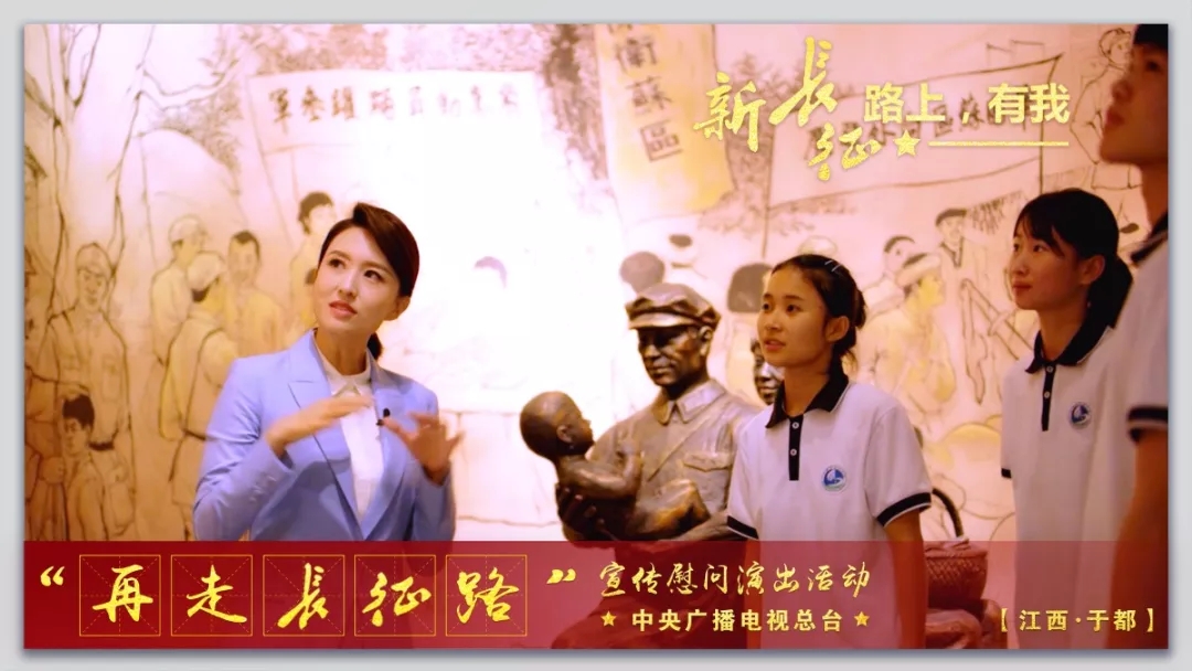 中央紅軍長(zhǎng)征出發(fā)紀(jì)念館是于都著名的紅色教育基地,再現(xiàn)了黨領(lǐng)導(dǎo)人民進(jìn)行革命斗爭(zhēng)的情景。一幅幅圖片,一件件實(shí)物,都引得參觀(guān)的人們駐足凝視。為搞好特色文化慰問(wèn)活動(dòng),中央廣播電視總臺(tái)組織總臺(tái)主持人、特邀演員結(jié)合長(zhǎng)征出發(fā)紀(jì)念館史實(shí),設(shè)計(jì)出戲劇式結(jié)構(gòu)、情景化表演的講解方式,給觀(guān)眾帶來(lái)獨(dú)特的觀(guān)看體驗(yàn)。