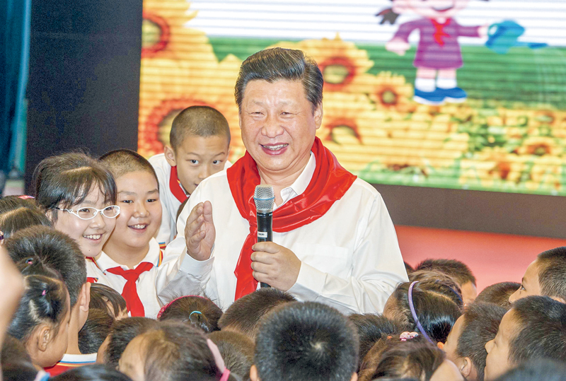 2014年5月30日上午,中共中央總書記、國家主席、中央軍委主席習(xí)近平來到北京市海淀區(qū)民族小學(xué),參加慶祝“六一”國際兒童節(jié)活動。這是習(xí)近平在參加少先隊入隊儀式時,向少先隊員們致以節(jié)日問候。 新華社記者 謝環(huán)馳/攝