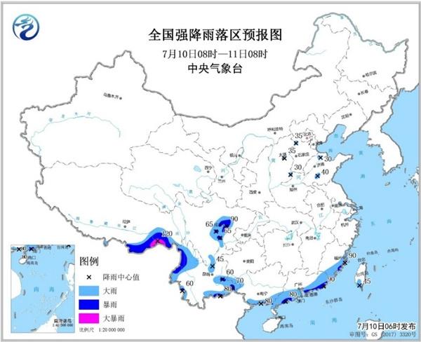 中央氣象臺(tái)7月10日06時(shí)發(fā)布暴雨藍(lán)色預(yù)警: