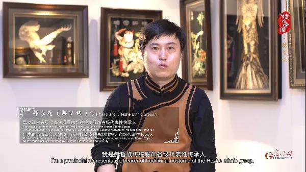 在赫哲族傳統(tǒng)服飾省級代表性傳承人同時也是赫哲族魚皮貼畫技藝市級代表性傳承人解永亮看來,赫哲族的魚皮藝術也是人類的生存藝術,也可以稱之為寫在魚皮上的史書。