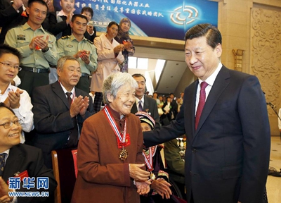 2013年9月26日,中共中央總書記、國家主席、中央軍委主席習近平在北京會見第四屆全國道德模范及提名獎獲得者。這是習近平同全國道德模范龔全珍親切交談。新華社記者 鞠 鵬攝
