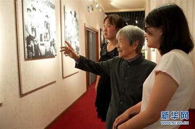 2013年5月21日,龔全珍(中)在江西萍鄉(xiāng)市蓮花縣革命烈士紀念館向人們講述丈夫甘祖昌將軍的故事。新華社記者 胡晨歡 攝