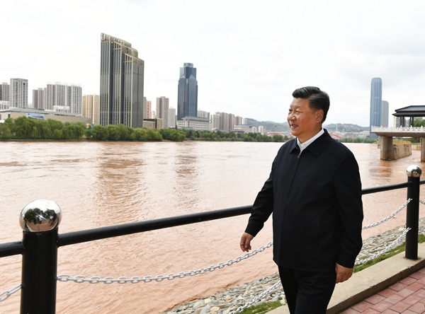 習(xí)近平登上觀景平臺(tái),俯瞰堤壩加固防洪工程,了解當(dāng)?shù)亻_展黃河治理和生態(tài)保護(hù)情況。他叮囑省市兩級(jí)負(fù)責(zé)同志,甘肅是黃河流域重要的水源涵養(yǎng)區(qū)和補(bǔ)給區(qū),要首先擔(dān)負(fù)起黃河上游生態(tài)修復(fù)、水土保持和污染防治的重任,蘭州要在保持黃河水體健康方面先發(fā)力、帶好頭。