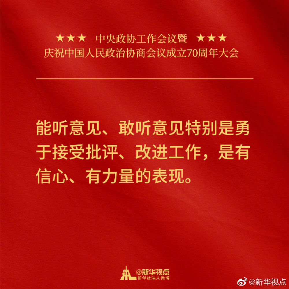 金句來(lái)了!習(xí)近平在中央政協(xié)工作會(huì)議暨慶祝中國(guó)人民政治協(xié)商會(huì)議成立70周年大會(huì)上的講話(huà)金句。