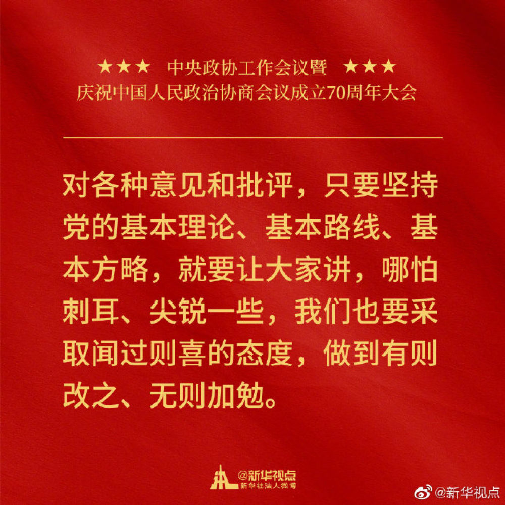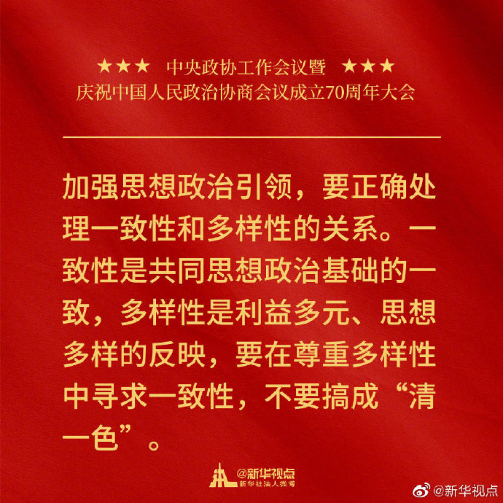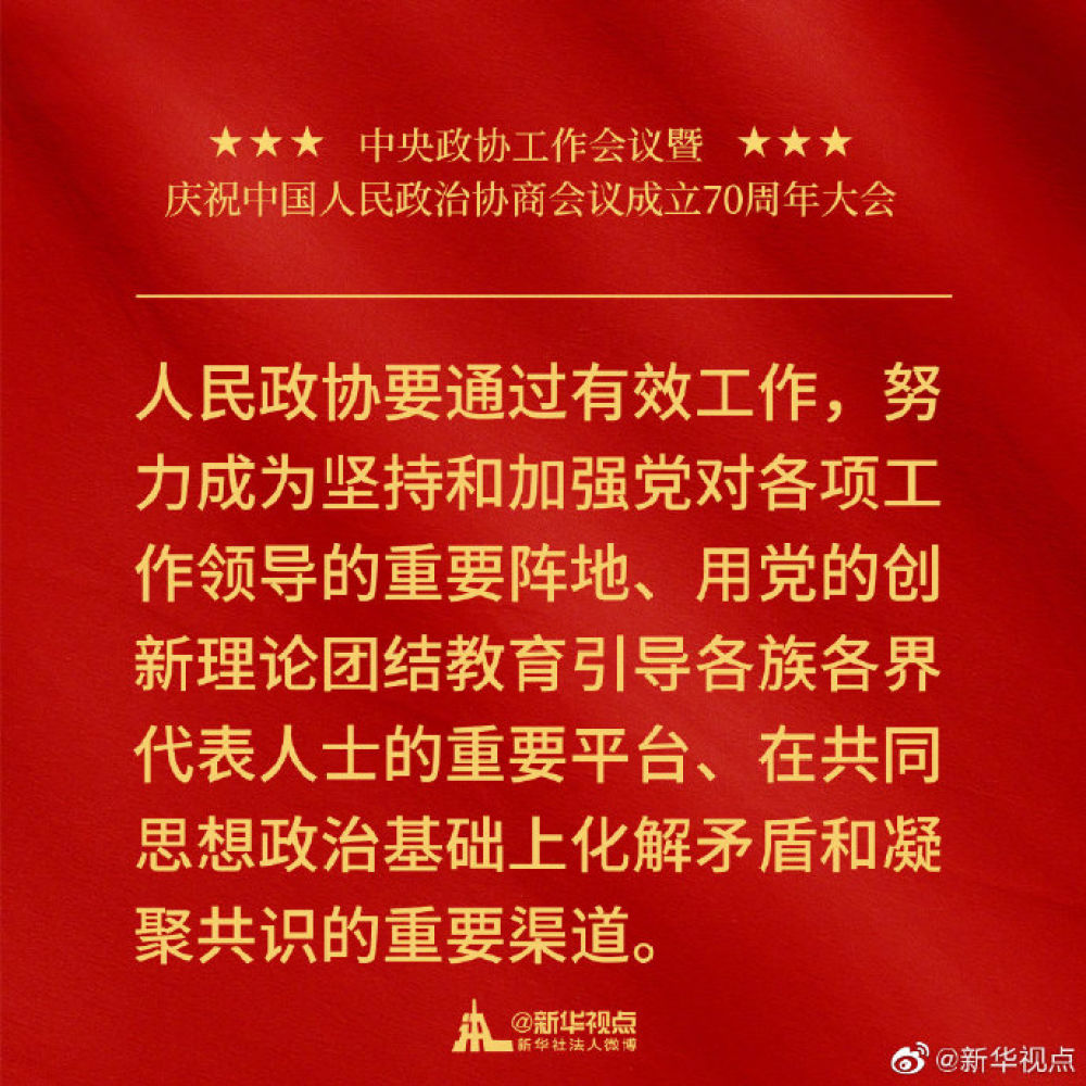 金句來(lái)了!習(xí)近平在中央政協(xié)工作會(huì)議暨慶祝中國(guó)人民政治協(xié)商會(huì)議成立70周年大會(huì)上的講話(huà)金句↓