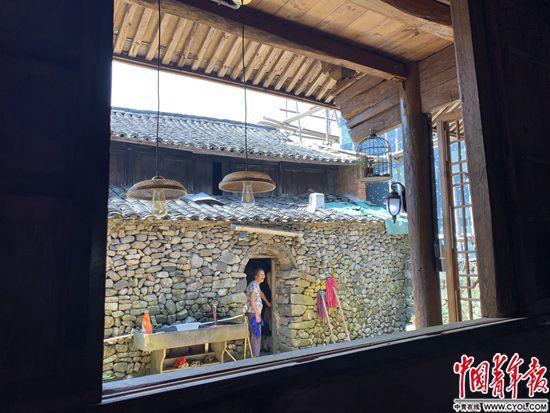 還有已經(jīng)廢棄的院子重新發(fā)揮作用——盛豬食的石槽變成了喝茶聊天的石桌,4戶人家屋后堆放雜物的備用地一起拿出來(lái),做成了一個(gè)休閑的公共場(chǎng)所,叢志強(qiáng)把這塊鵝卵石鋪成的平地叫“四君子院”。還有一個(gè)共享空間,是8戶人家共同拿出自家院子打造的。