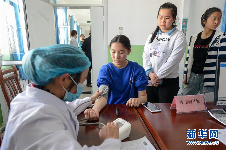 在新疆霍爾果斯市莫乎爾衛(wèi)生院,轄區(qū)居民接受免費體檢(2019年3月23日攝)。 新華社記者 丁磊 攝