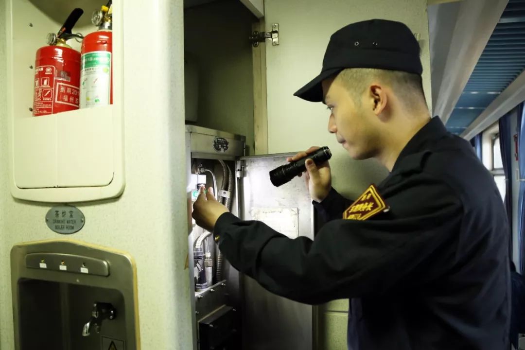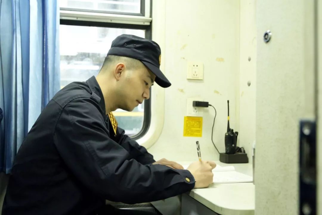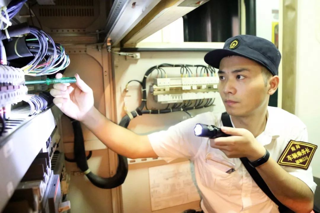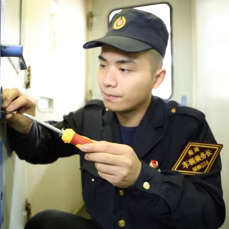 凌晨時分,列車飛馳在原野,旅客們隨著列車的咣當聲進入了夢鄉(xiāng)。車廂里,一個年輕的身影輕輕地走來,他一會兒停在列車電氣控制柜查看運行數(shù)據(jù),一會兒看看車門鎖閉情況,也看看消防設(shè)施和防火情況,順便提醒一下在車廂連接處吸煙的旅客“煙頭一定要熄滅后放在煙灰缸內(nèi)”……這身影就是剛從賽場回到崗位的顏其。