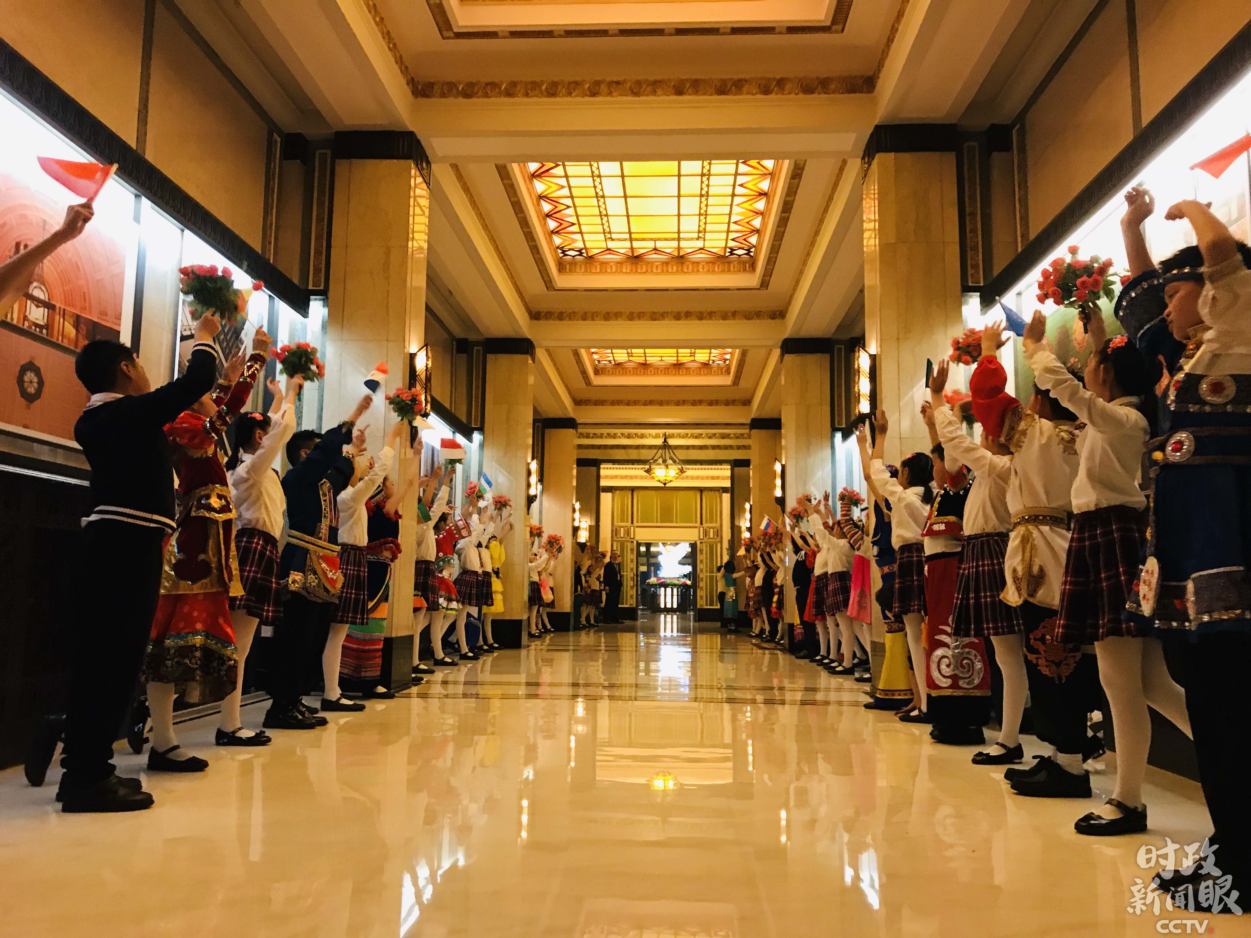 △11月4日晚,歡迎各國貴賓的小朋友們。(央視記者魏子鈞拍攝)