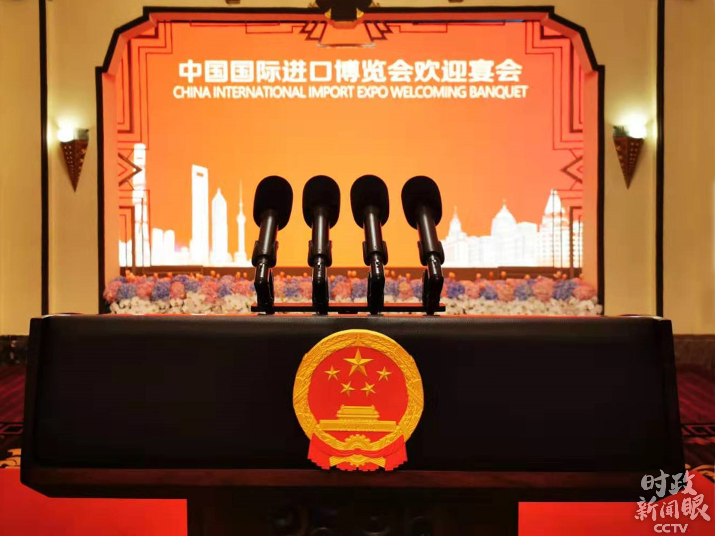 △11月4日晚,習(xí)近平主席在歡迎宴會上致辭時說,進博會“迎的是五洲客,計的是天下利”。(央視記者馬亞陽拍攝)