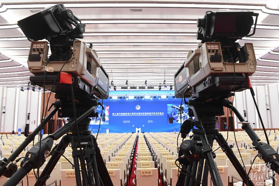 △11月5日上午,中央廣播電視總臺將對第二屆進博會開幕式作現(xiàn)場直播,目前直播準(zhǔn)備工作已經(jīng)就緒。(央視記者廖江衡拍攝)