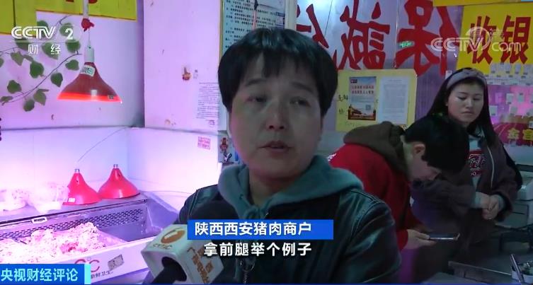 陜西西安豬肉商戶:拿前腿舉個(gè)例子,最貴的時(shí)候三斤肉就在接近90(元),這兩天的話三斤肉才不到70塊錢(qián)。
