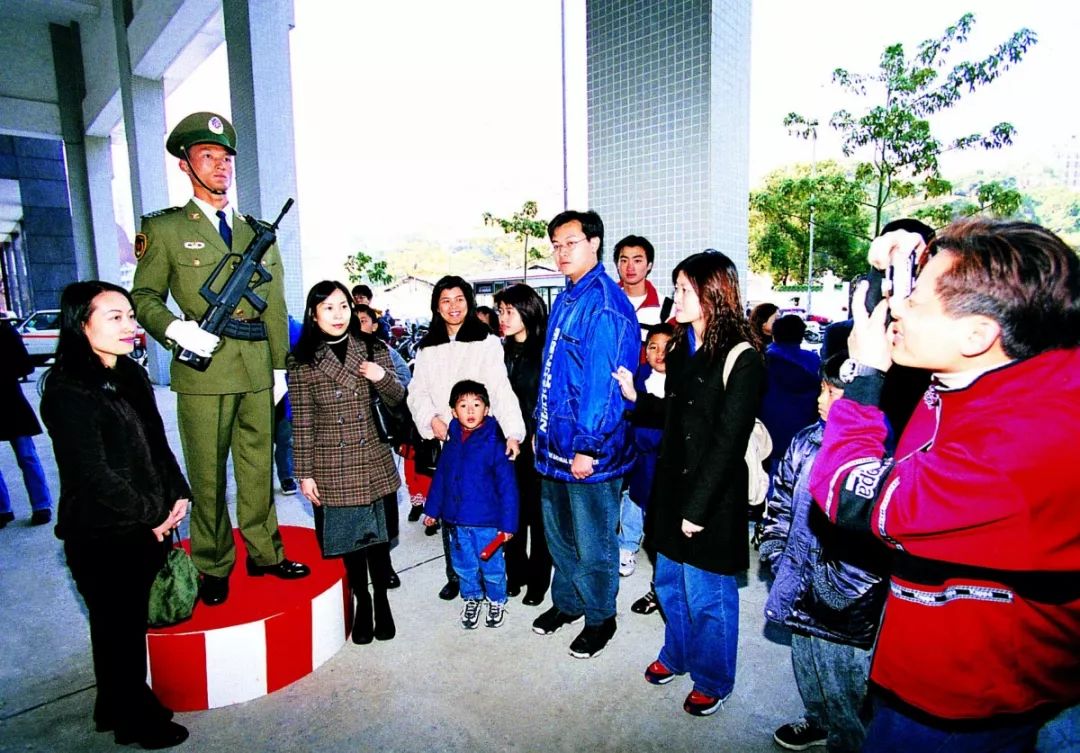 △澳門(mén)市民爭(zhēng)相與哨兵合影。資料圖