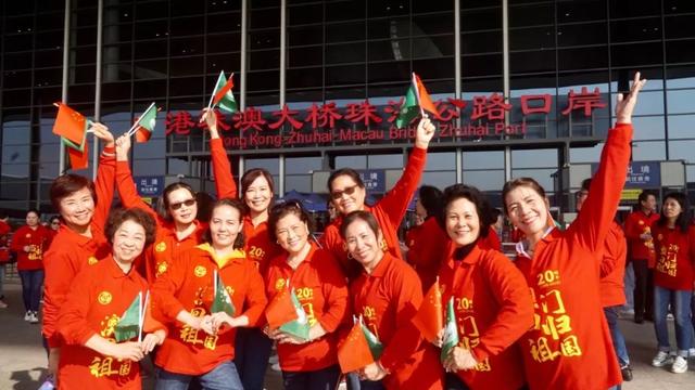 在拍攝港珠澳大橋場景的當(dāng)天,第十三屆全國人大代表、澳門街坊會聯(lián)合總會理事長吳小麗帶領(lǐng)70名澳門婦女代表手持五星紅旗和澳門特別行政區(qū)區(qū)旗,與珠海市香洲區(qū)130余名各界婦女代表歡聚在港珠澳大橋珠海公路口岸,滿懷對祖國和澳門的無限熱愛,共唱《七子之歌·澳門》《中華民謠》。