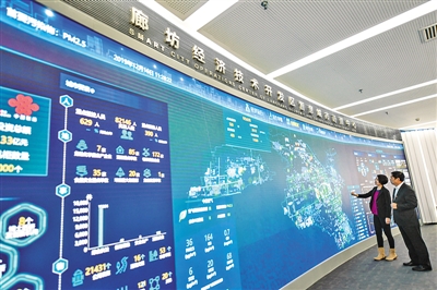 在河北廊坊開發(fā)區(qū)智慧城市運(yùn)營中心,工作人員在對數(shù)據(jù)進(jìn)行分析。新華社發(fā)