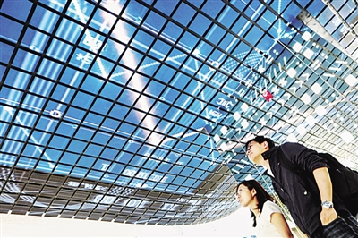 參觀者在國家大數(shù)據(jù)(貴州)綜合試驗區(qū)展示中心內(nèi)參觀。新華社發(fā)