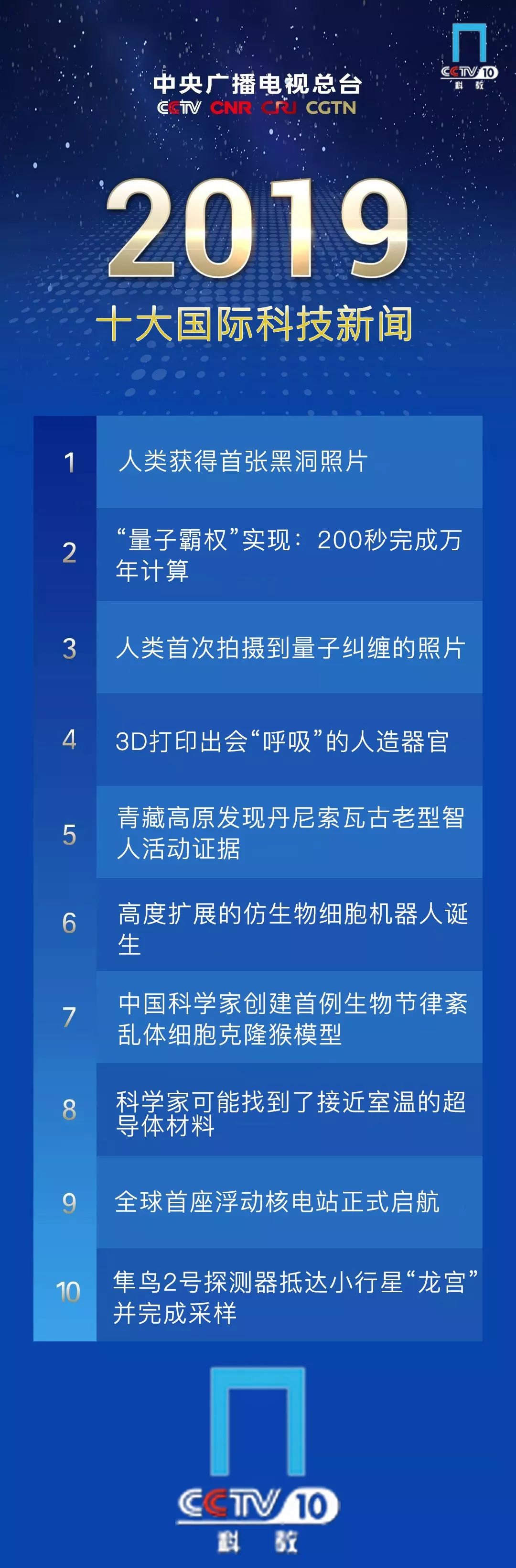 中央廣播電視總臺2019十大國內(nèi)國際科技新聞!