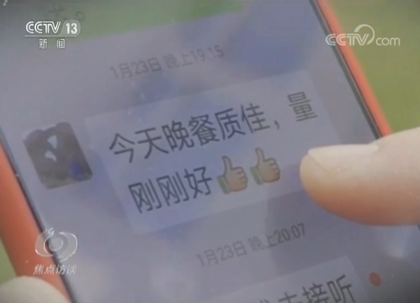將近半個(gè)月來,在袁女士和老伴盧先生的聊天記錄里,經(jīng)常能看到先生夸獎(jiǎng)自己手藝的信息。盧先生1月初因?yàn)榇_診新型冠狀病毒感染肺炎住進(jìn)了隔離病房里,每天的“點(diǎn)餐”和“點(diǎn)評”就是他病情的晴雨表。