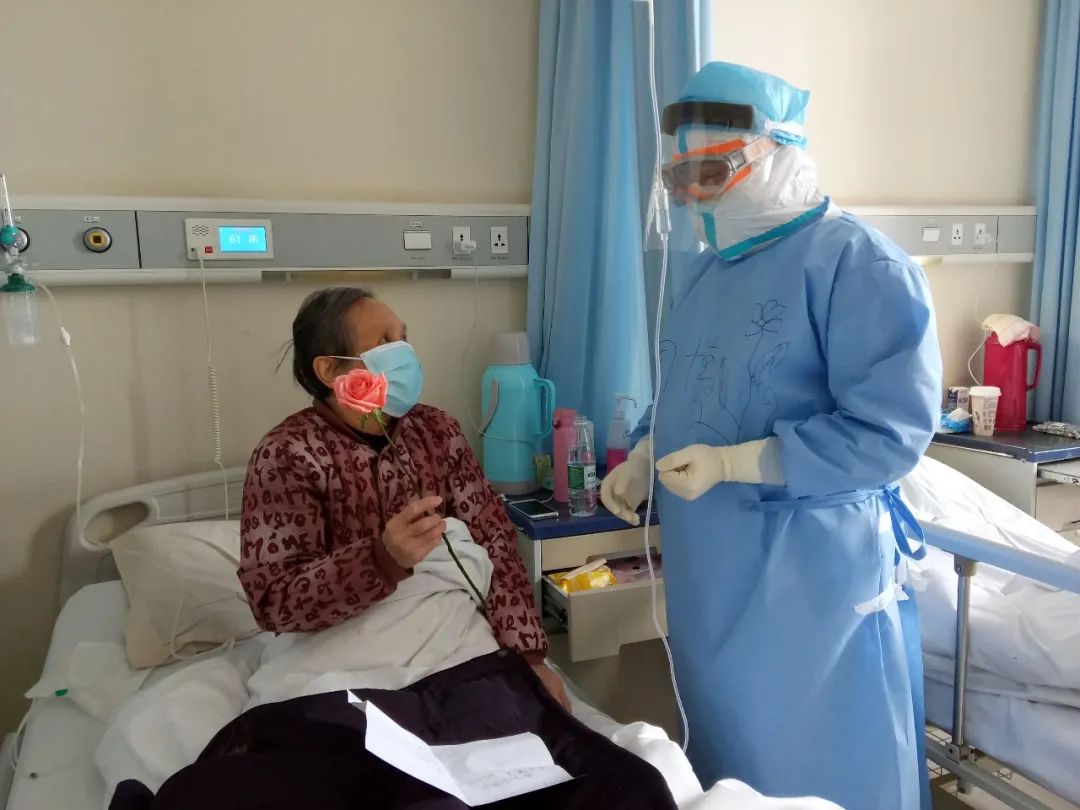 51床和61床是一對老夫妻,70多歲的重癥患者,目前病情都逐漸好轉(zhuǎn),近日將安排出院。就在前天我剛查完房,老爺爺偷偷把我叫到身邊對我說:“小周醫(yī)生,出院前我想給我老伴一個驚喜,可否幫我準(zhǔn)備一支玫瑰花,謝謝你們!”
