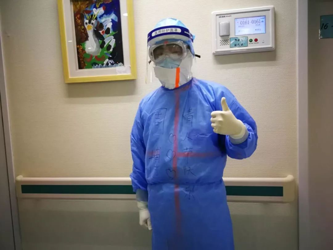 每次上班,每個人都要全副武裝,一身行頭把我們包裹得嚴(yán)嚴(yán)實(shí)實(shí),但在我看來,我們更像是卡通人物“大白”,每一刻都在給予患者溫暖與關(guān)懷。