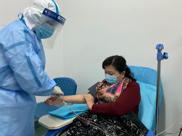 ↑張定宇妻子程琳痊愈后捐獻(xiàn)血漿。