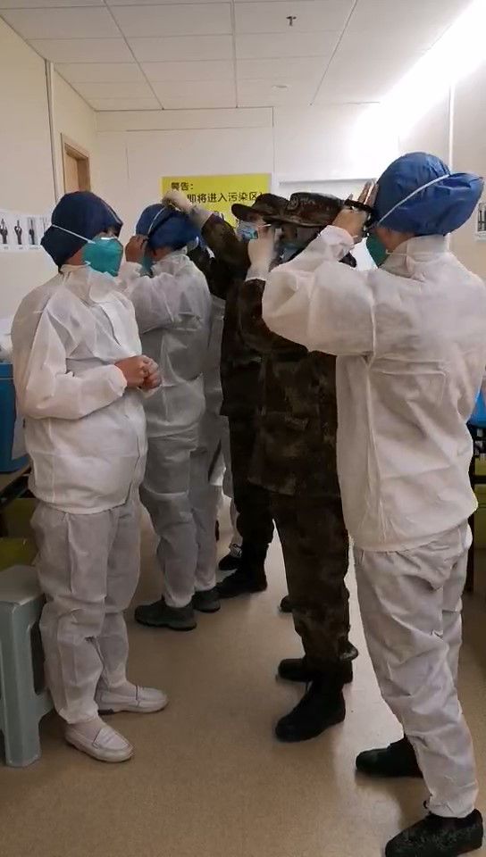 張艷幫戰(zhàn)友穿戴防護(hù)服。