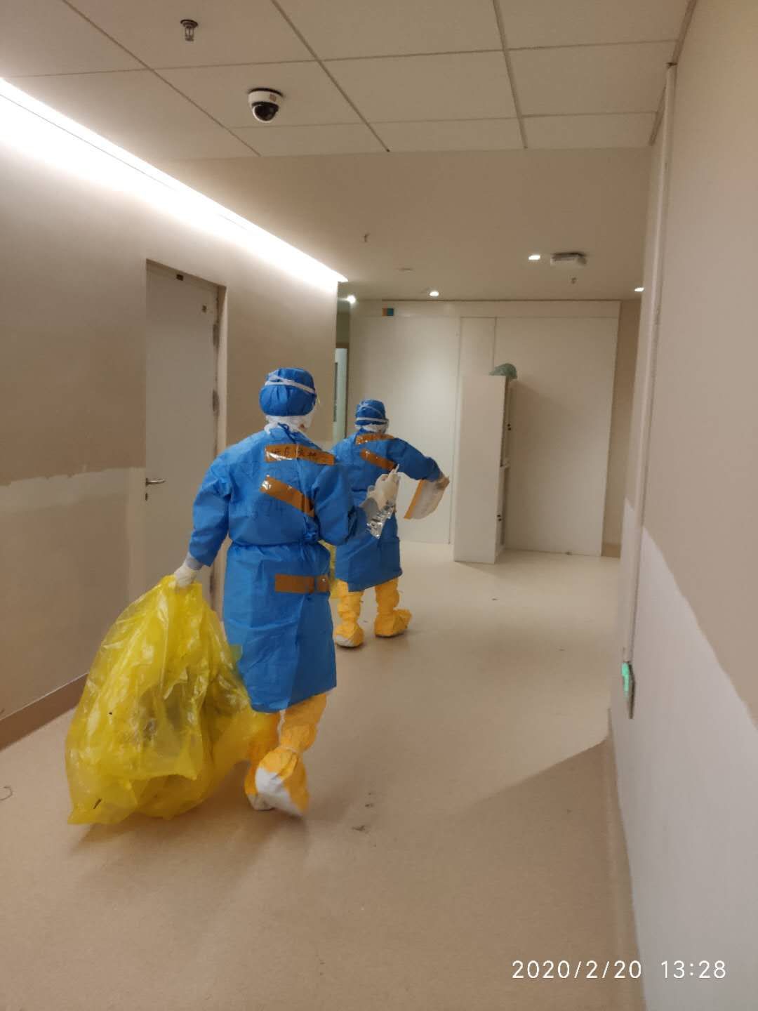 在一線工作的日子里,張艷既要給病人打針吃藥、完成各種護(hù)理工作,還主動幫助科里清理醫(yī)療垃圾。穿著厚厚的防護(hù)服工作時汗流浹背,勞動的時候還是一身汗水,同事們都親切地稱她為“女漢子”+“女汗子”。