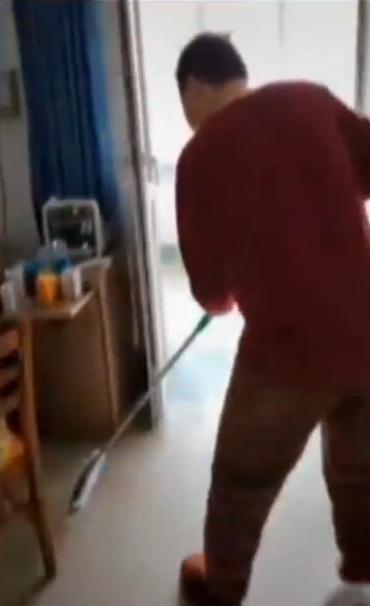 上海援鄂醫(yī)療隊(duì)的醫(yī)護(hù)人員拍攝了一段小視頻,正在拖地的小伙子并不是工作人員,而是一名剛剛治愈的患者。