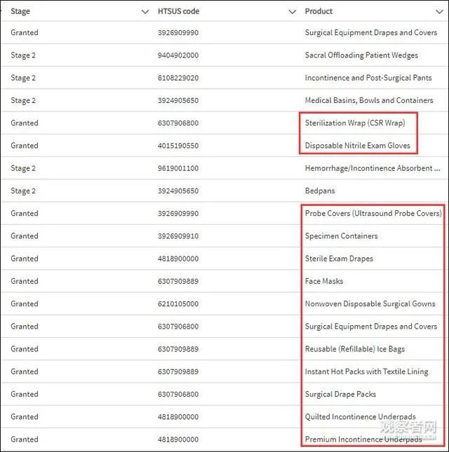 據(jù)彭博社報(bào)道,美國(guó)一家名為Medegen醫(yī)療產(chǎn)品的公司,也在此次豁免名單之列。該公司在申請(qǐng)中表示,對(duì)這些產(chǎn)品加征關(guān)稅將導(dǎo)致較大的經(jīng)濟(jì)損害,并且增加美國(guó)醫(yī)療衛(wèi)生服務(wù)提供商和他們的顧客的成本。