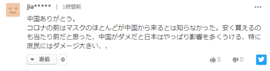 感謝中國。出現(xiàn)了冠狀病毒才知道用的口罩大多是中國來的,以前真的不知道。曾經(jīng)覺得很便宜就能買到(口罩)是天經(jīng)地義的呢,中國要是出了問題,對日本的影響會很嚴重,特別是平民百姓,那會受到很大傷害的……