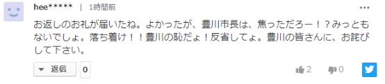 實際上,在這個新聞后面,有不少為中國打抱不平的,但有的純屬誤傷,比如下面這則罵日本豐川市市長的。