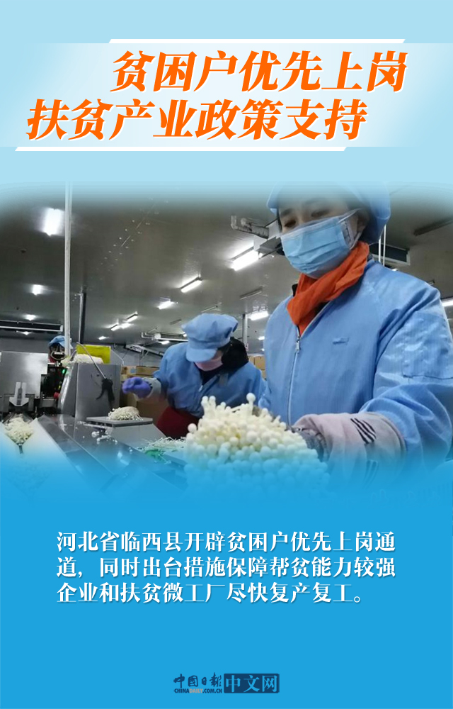 突如其來(lái)的新冠肺炎疫情,給中國(guó)脫貧攻堅(jiān)帶來(lái)了新的挑戰(zhàn)。各地區(qū)各部門高度重視,統(tǒng)籌推進(jìn)疫情防控和脫貧攻堅(jiān),做好春耕備耕工作,優(yōu)先支持貧困勞動(dòng)力返崗就業(yè),加大務(wù)工人員送接工作力度,解決扶貧農(nóng)畜牧產(chǎn)品滯銷問題,支持扶貧產(chǎn)業(yè)恢復(fù)生產(chǎn)等,全力克服疫情影響,確保如期完成脫貧攻堅(jiān)目標(biāo)任務(wù)。