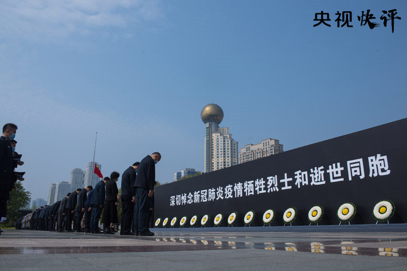 清明寄哀思。今天上午10時(shí),習(xí)近平、李克強(qiáng)、栗戰(zhàn)書、汪洋、王滬寧、趙樂(lè)際、韓正、王岐山等黨和國(guó)家領(lǐng)導(dǎo)人來(lái)到中南海懷仁堂前,向新冠肺炎疫情犧牲烈士和逝世同胞默哀3分鐘。全國(guó)各地汽車、火車、艦船鳴笛,防空警報(bào)鳴響,舉國(guó)哀悼。