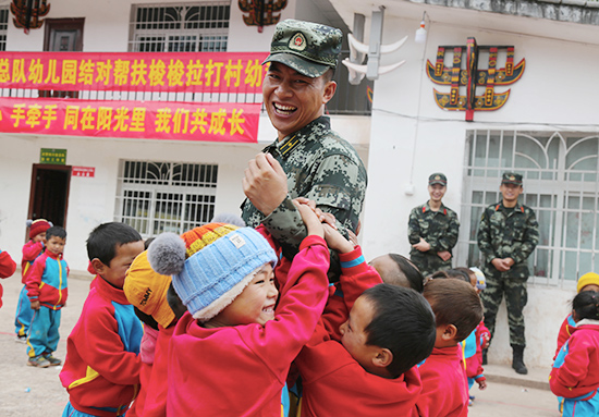 他充分發(fā)揮部隊特有優(yōu)勢,指導駐地中隊黨支部與幫扶村掛鉤聯(lián)建,為脫貧奔康奠定了堅強組織保證。主動擔起參與修建入戶路的責任,2個多月沒回一次家,天天吃住在現(xiàn)場,贏得了村民的一致認可。