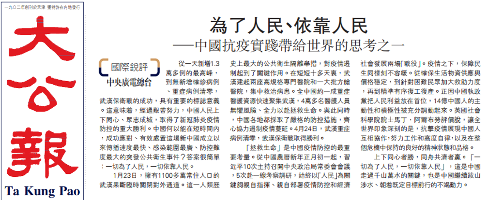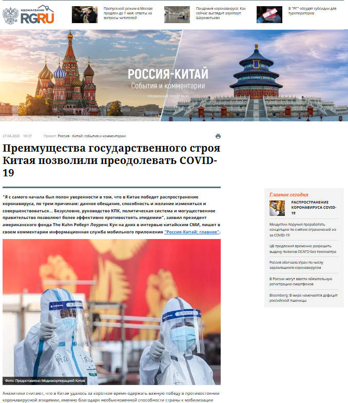 俄羅斯政府機(jī)關(guān)報(bào)《俄羅斯報(bào)》:四評(píng)中國(guó)抗疫給世界的思考