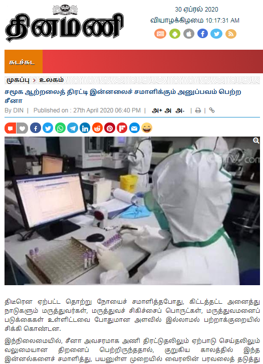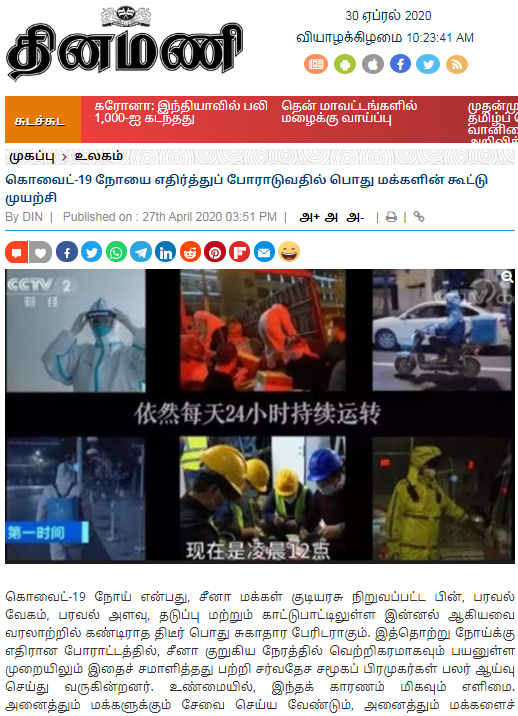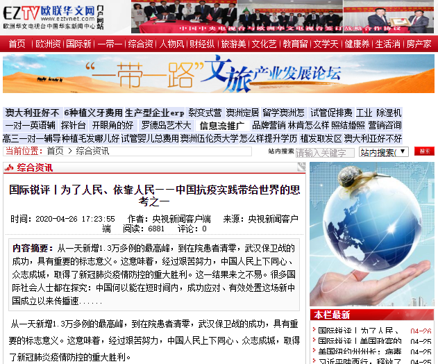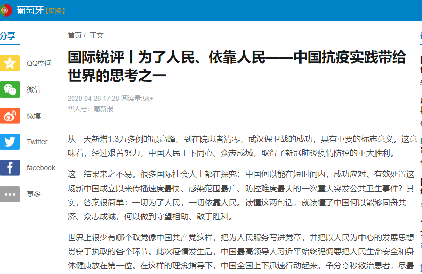 4月26日,泰國(guó)著名社交媒體主頁(yè)NEW SILK ROAD發(fā)表題為《為了人民依靠人民——中國(guó)抗疫實(shí)踐帶給世界的思考》的文章。文章稱,中國(guó)之所以能在短時(shí)間內(nèi),成功應(yīng)對(duì)、有效處置這場(chǎng)新中國(guó)成立以來(lái)傳播速度最快、感染范圍最廣、防控難度最大的一次重大突發(fā)公共衛(wèi)生事件,答案就是:一切為了人民,一切依靠人民。