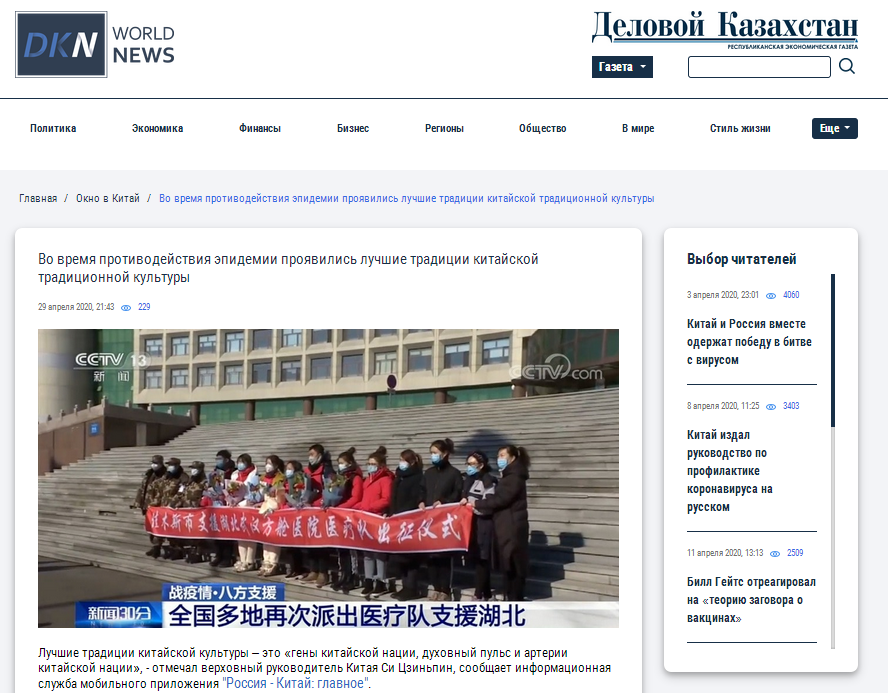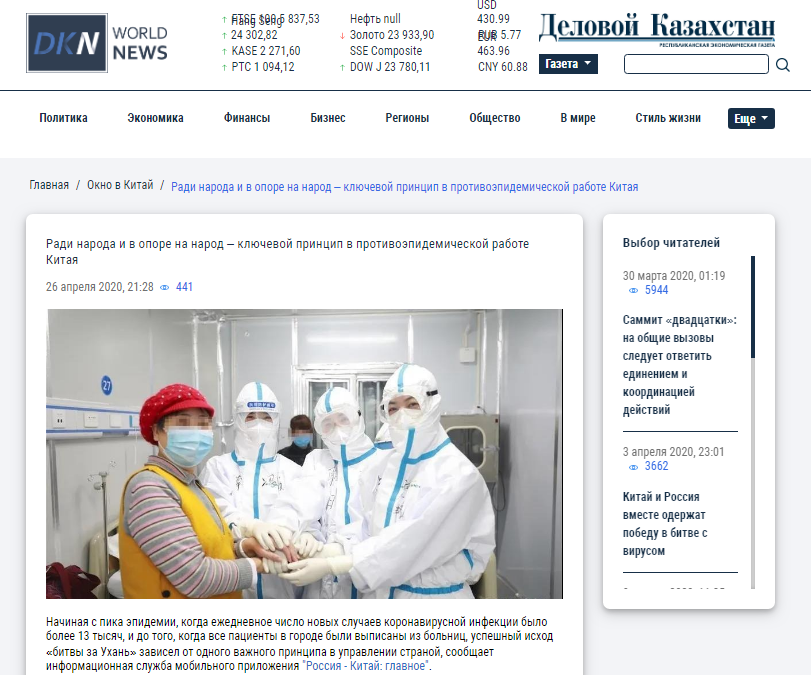 哈薩克斯坦《哈薩克斯坦實(shí)業(yè)報(bào)》:中國(guó)抗疫的關(guān)鍵準(zhǔn)則