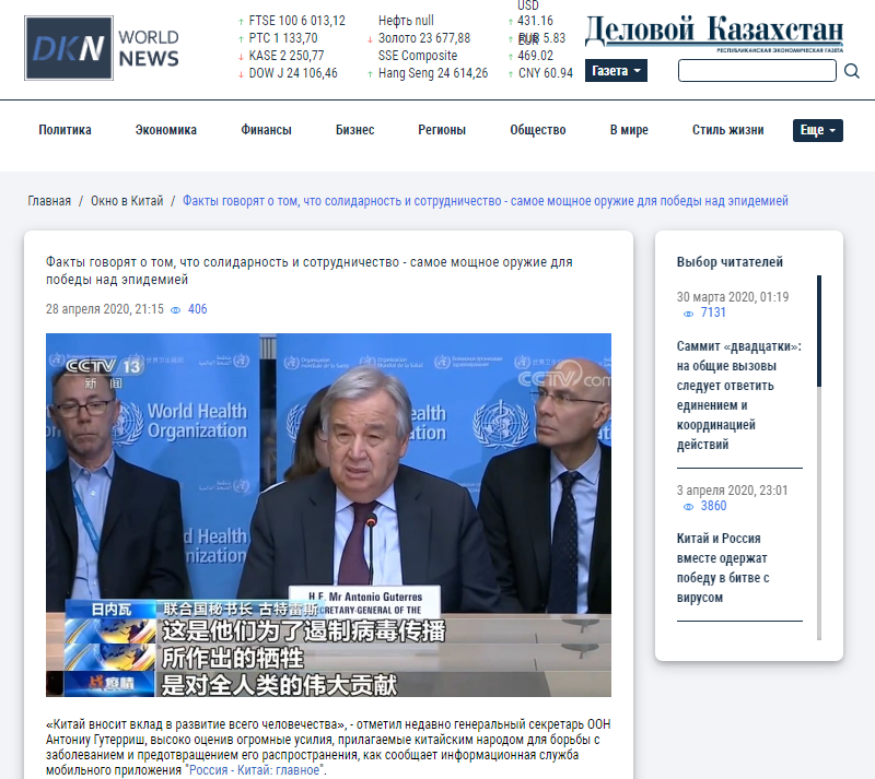 《哈薩克斯坦實(shí)業(yè)報(bào)》還在其官網(wǎng)發(fā)表題為《事實(shí)表明,團(tuán)結(jié)與合作是戰(zhàn)勝疫情最有力的武器》的文章。文章稱,中國(guó)毫無(wú)保留地與國(guó)際社會(huì)分享疫情防控和診療方案,專門建立了新冠肺炎疫情網(wǎng)上知識(shí)中心和國(guó)際合作專家?guī),與100多個(gè)國(guó)家和地區(qū)舉辦了40多場(chǎng)技術(shù)交流視頻會(huì)議,與國(guó)際社會(huì)開(kāi)展疫苗和藥品研發(fā)合作。