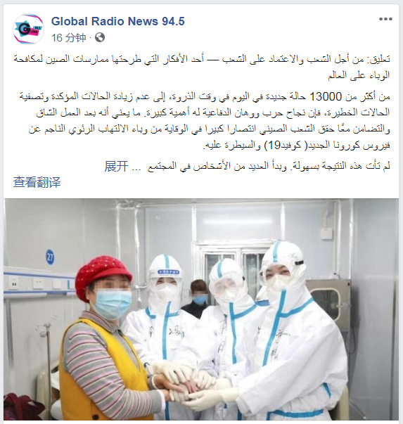 艾爾辛達(dá)電臺(tái)發(fā)表評(píng)論稱,中國(guó)領(lǐng)導(dǎo)人習(xí)近平從一開(kāi)始就把這場(chǎng)疫情防控戰(zhàn)定義為“人民戰(zhàn)爭(zhēng)”。他說(shuō),“人民才是真正的英雄”。 各行各業(yè)的普通人,都在自己的崗位上默默努力,匯聚起戰(zhàn)勝病毒的強(qiáng)大合力,最終打贏了這場(chǎng)“人民戰(zhàn)爭(zhēng)”!