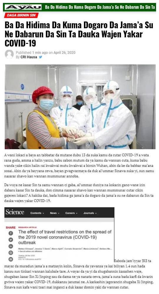 △尼日利亞豪薩文報(bào)《領(lǐng)導(dǎo)者報(bào)》刊文