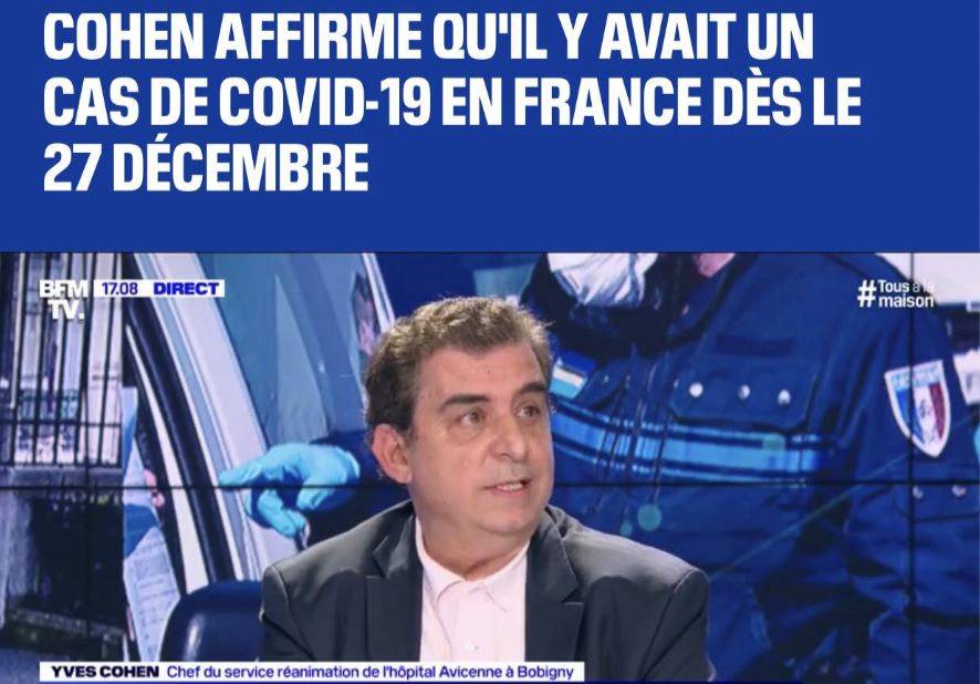 這名叫伊夫·科昂的教授是巴黎附近地區(qū)兩家醫(yī)院的危重癥科室負(fù)責(zé)人。他在3日參加一檔電視節(jié)目時(shí)表示,他所負(fù)責(zé)的兩家醫(yī)院對去年12月到今年1月期間出現(xiàn)肺炎癥狀的病人的核酸樣本重新進(jìn)行了新冠病毒檢測。在對24份樣本的檢測中發(fā)現(xiàn),其中一名去年12月27日住院的病人結(jié)果呈陽性?瓢航淌诒硎荆@名病人經(jīng)過15天治療后痊愈,目前身體狀況良好,他的兩個(gè)孩子也被確診感染。