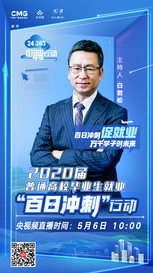 作為2020屆普通高校畢業(yè)生就業(yè)“百日沖刺”行動的重要平臺,由中央廣播電視總臺與教育部共同發(fā)起,總臺央視頻攜手國投人力主辦的“24365國聘行動”聯(lián)合專場招聘活動,5月6日正式上線啟動。中宣部副部長、中央廣播電視總臺臺長慎海雄,教育部黨組成員、副部長翁鐵慧以視頻連線方式出席了啟動儀式。